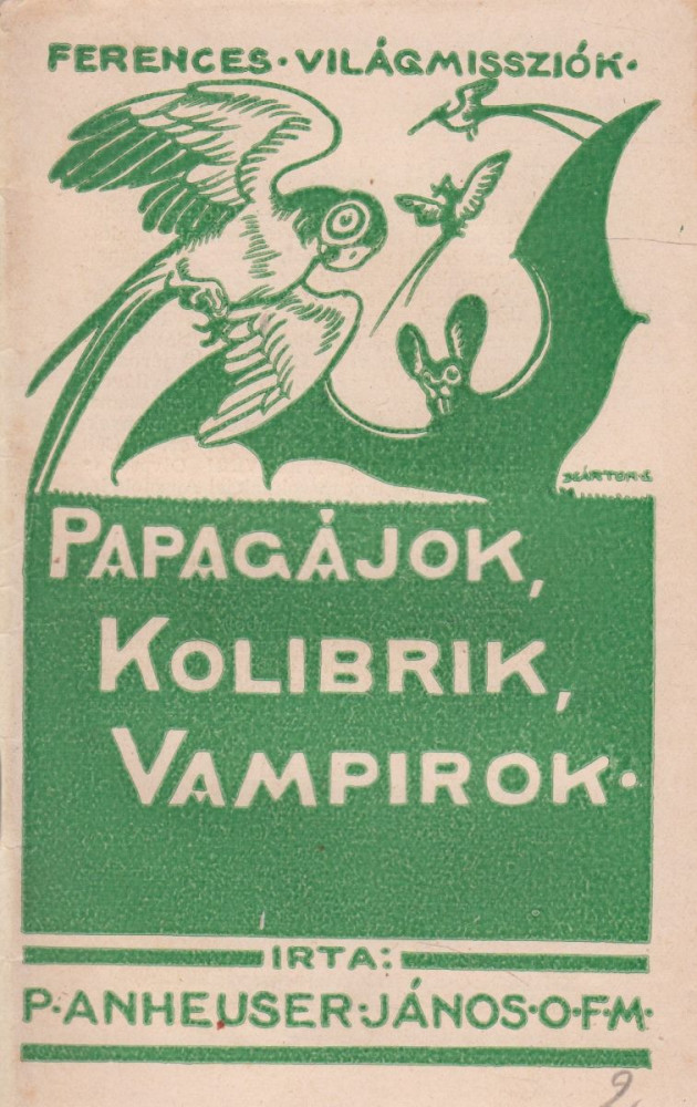 Anhauser János: Papagájok; kolibrik, vampírok… Bp., (1941.) Ferences Missziók Országos Ügyvivősége, Kapisztrán nyomda, Vác. 48 p. {Ferences világmissziók beszámolók és elbeszélések 2. szám}. Tűzve, kiadói, illusztrált papírborítóban. 164 mm. Szép példány.