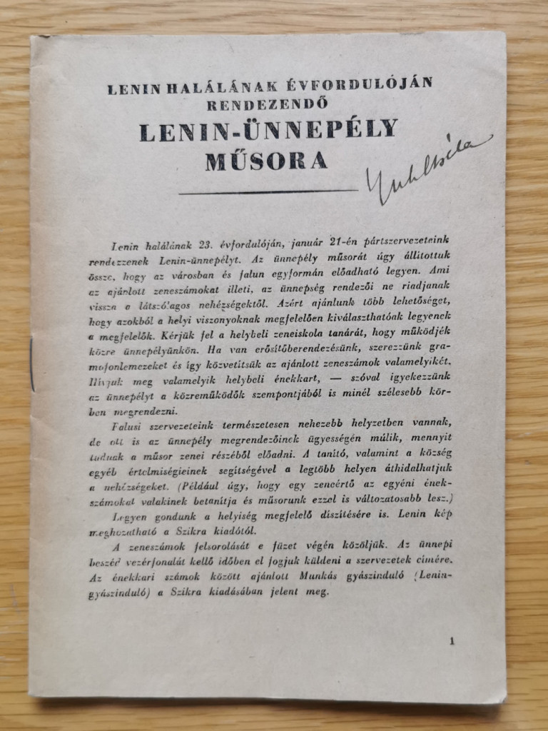 Lenin halálának évfordulóján rendezendő Lenin-Ünnepély műsora
