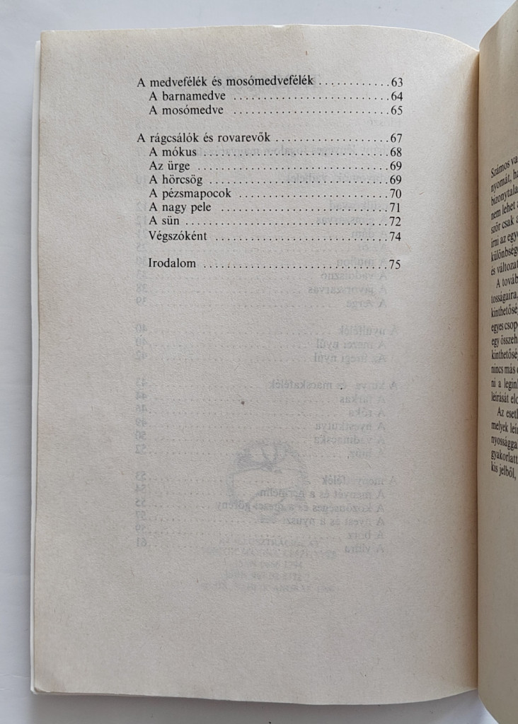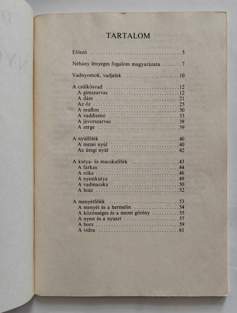 Járjuk hát nyitott szemmel a terméseztet, értőn, csodálkozzunk rá rejtelmeire. Ehhez hivatott segítséget nyújtani ez a kis könyv 30 vadászható és védett emlős nyomainak leírásával, és a jelenlétükről árulkodó egyéb jelek ismertetésével. Ehhez kíván élményekben gazdag felfedező utat a szerző.