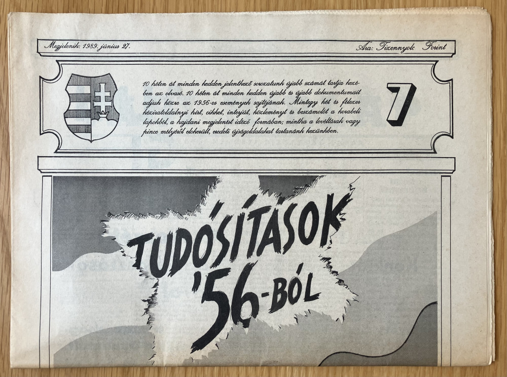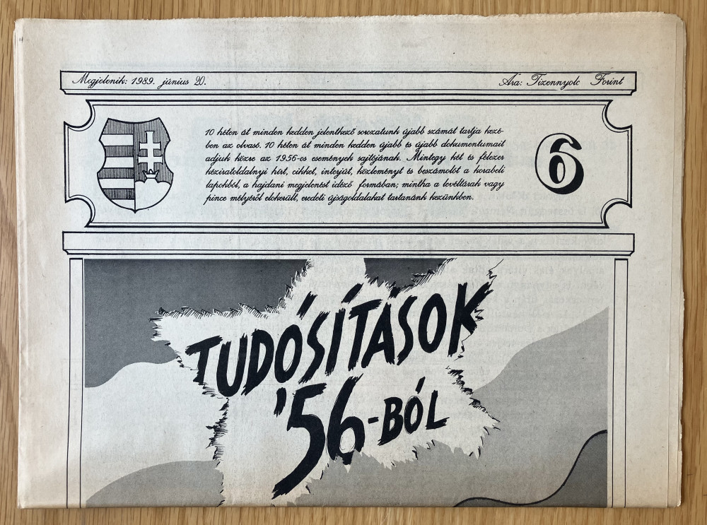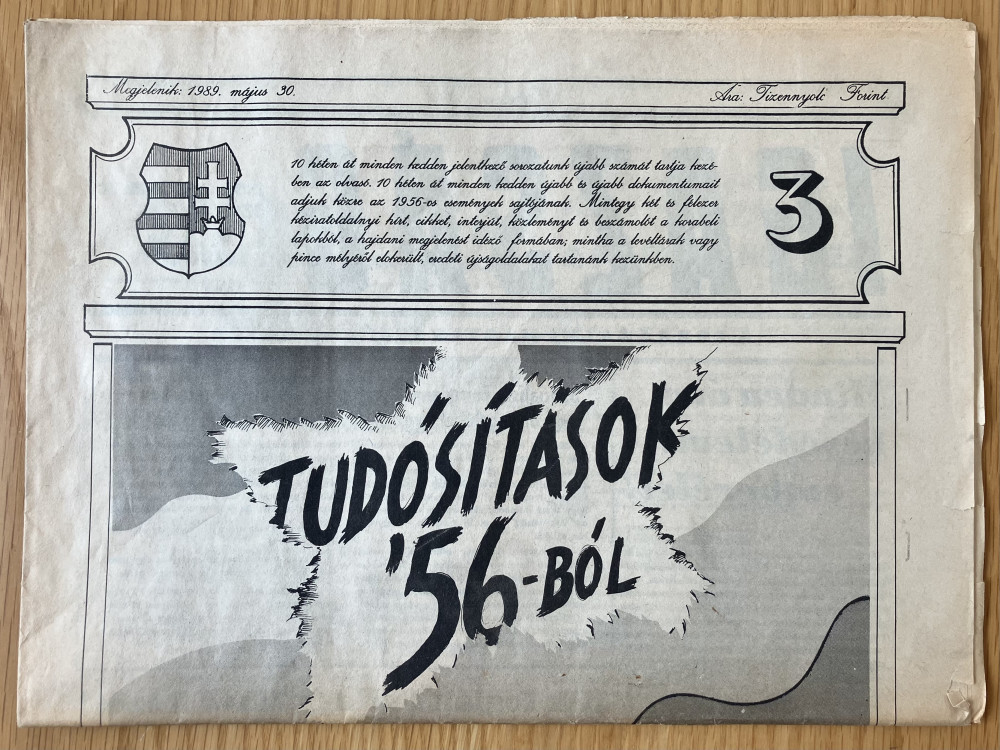 10 héten át minden kedden jelentkező sorozatunk első számát tartja kezében az olvasó. 10 héten át minden kedden újabb és újabb dokumentumait adjuk közre az 1956-os események sajtójának. Mintegy hét és félezer kéziratoldalnyi hírt; cikket, interjút, közleményt és beszámolót a korabeli lapokból, a hajdani megjelenést idéző formában; mintha a levéltárak vagy pince mélyéről előkerült, eredeti újságdarabokat tartanánk kezünkben.