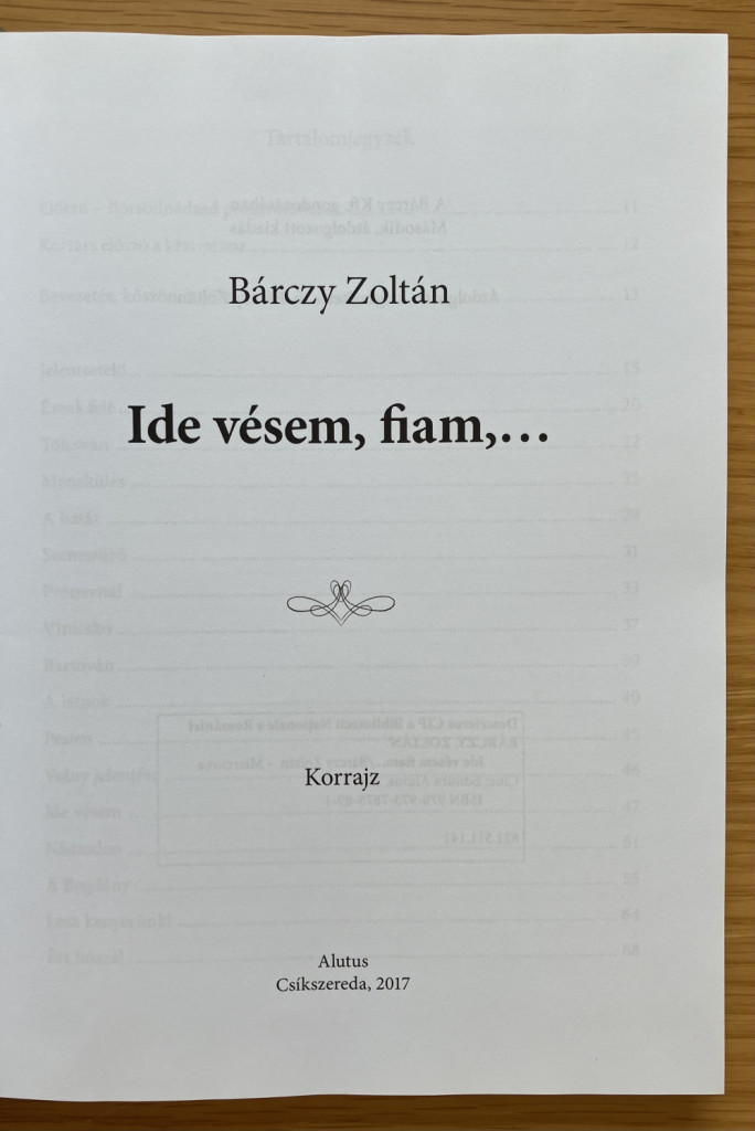 Bárczy Zoltán: Ide vésem fiam,... (Korrajz)