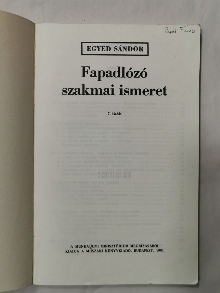 Egyed Sándor: Fapadlózó szakmai ismeret