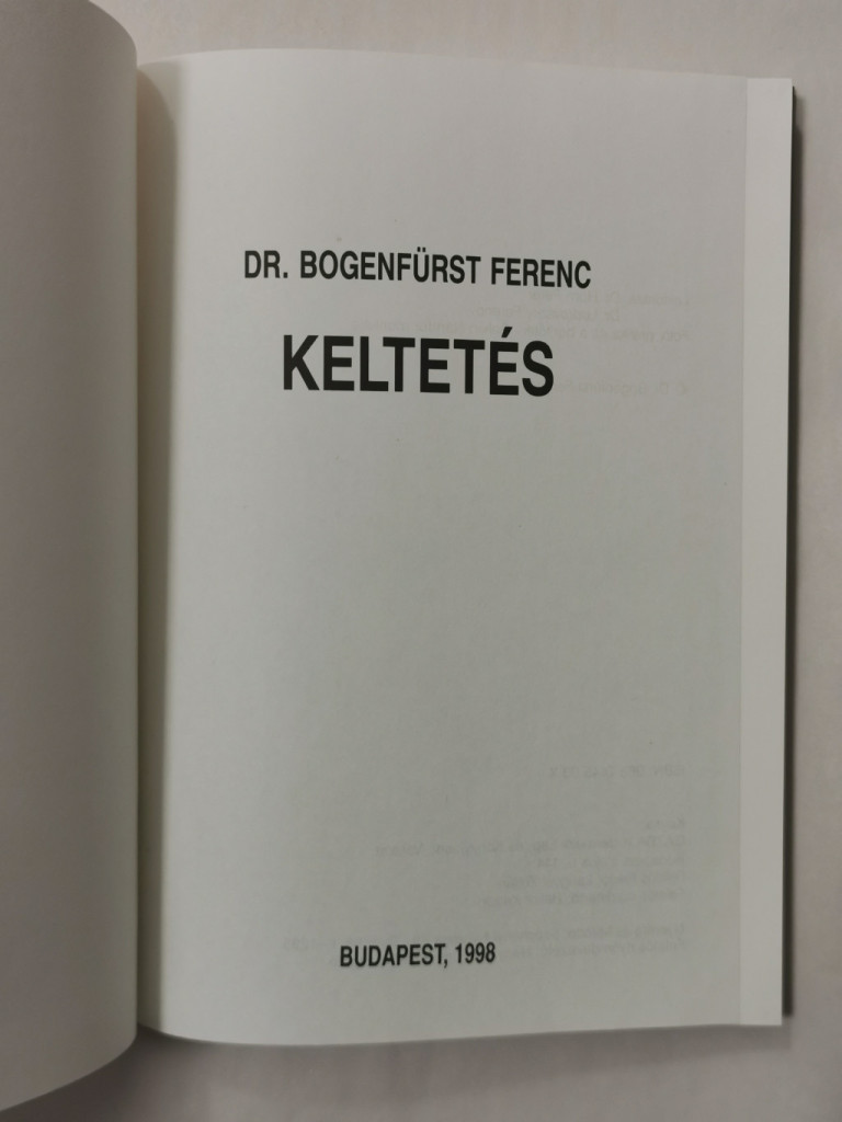 Bogenfürst Ferenc, Dr.: Keltetés - Tyúkfélék, víziszárnyasok, szárnyas apróvadak és futómadarak
