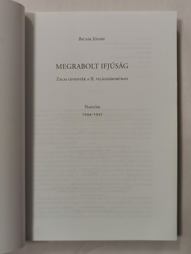 Bicsák József, aki a zalalövői leventékkel hagyta el az országot, naplót vezetett a velük történtekről - ez a napló megmaradt, szerencsésen átvészelte a történelem viharait, a légitámadásokat, a lövészárokharcokat, motozásokat. A sorokat olvasva képet kapunk a front mögötti, maradék Magyarország nyilas uralom alatti életéről, a leventék Németországba szállításáról, kiképzésükről, melynek értelme nem volt, s csak a velük kapcsolatba kerülő magyar katonáknak köszönhették, hogy nem SS-önkéntesként kerültek hadifogságba.