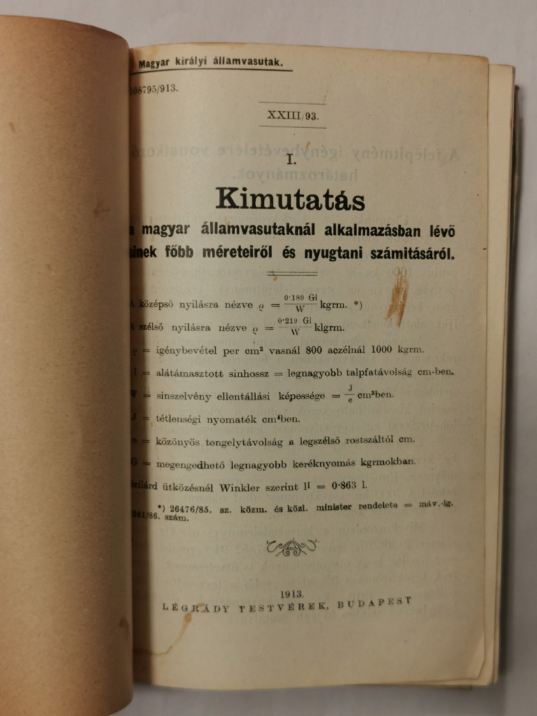 Kimutatás a magyar államvasutaknál alkalmazásban lévő sinek főbb méreteiről és nyugtani számításáról - Mellékletekkel