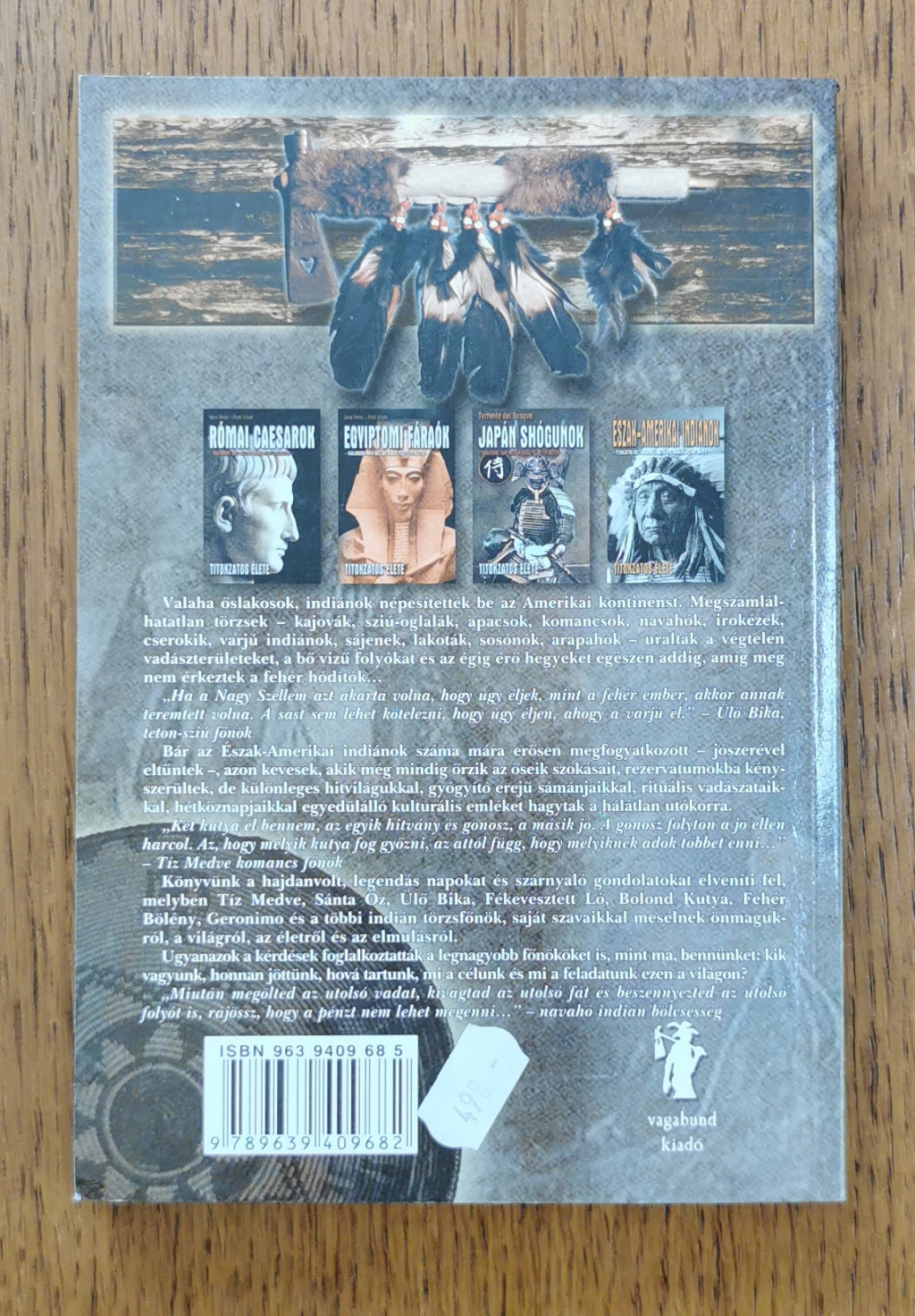 Valaha őslakosok; indiánok népesítették be az Amerikai kontinenst. Megszámlálhatatlan törzsek - kajovák, sziú-oglalák, apacsok, komancsok, navahók, irokézek, cserokik, varjú indiánok, sájenek, lakoták, sosónók, arapahók – uralták a végtelen vadászterületeket, a bő vizű folyókat és az égig érő hegyeket egészen addig, amíg meg nem érkeztek a fehér hódítók... „Ha a Nagy Szellem azt akarta volna, hogy úgy éljek, mint a fehér ember, akkor annak teremtett volna. A sast sem lehet kötelezni, hogy úgy éljen, ahogy a varjú él.” - Ülő bika teton-sziú főnök. Bár az Észak-Amerikai indiánok száma mára erősen megfogyatkozott – jószerével eltűntek -, azon kevesek, akik még mindig őrzik az őseik szokásait, rezervátumokba kényszerültek, de különleges hitvilágukkal, gyógyító erejű sámánjaikkal, rituális vadászataikkal, hétköznapjaikkal egyedülálló kulturális emléket hagytak a hálátlan utókorra. „Két kutya él bennem, az egyik hitvány és gonosz, a másik jó. A gonosz folyton a jó ellen harcol. Az, hogy melyik kutya fog győzni, az attól függ, hogy melyiknek adok többet enni...” - Tíz Medve komancs főnök. Könyvünk a hajdanvolt, legendás napokat és szárnyaló gondolatokat eleveníti fel, melyben Tíz Medve, Sánta Őz, Ülő Bika, Fékevesztett Ló, Bolond Kutya, Fehér Bölény, Geronimo és a többi indián törzsfőnök, saját szavaikkal mesélnek önmagukról, a világról, az életről és az elmúlásról. Ugyanazok a kérdések foglalkoztatták a legnagyobb főnököket is, mint ma, bennünket: kik vagyunk, honnan jöttünk, hová tartunk, mi a célunk és mi a feladatunk ezen a világon? „Miután megölted az utolsó vadat, kivágtad az utolsó fát és beszennyezted az utolsó folyót is, rájössz, hogy a pénzt nem lehet megenni...” - navahó indián bölcsessség.