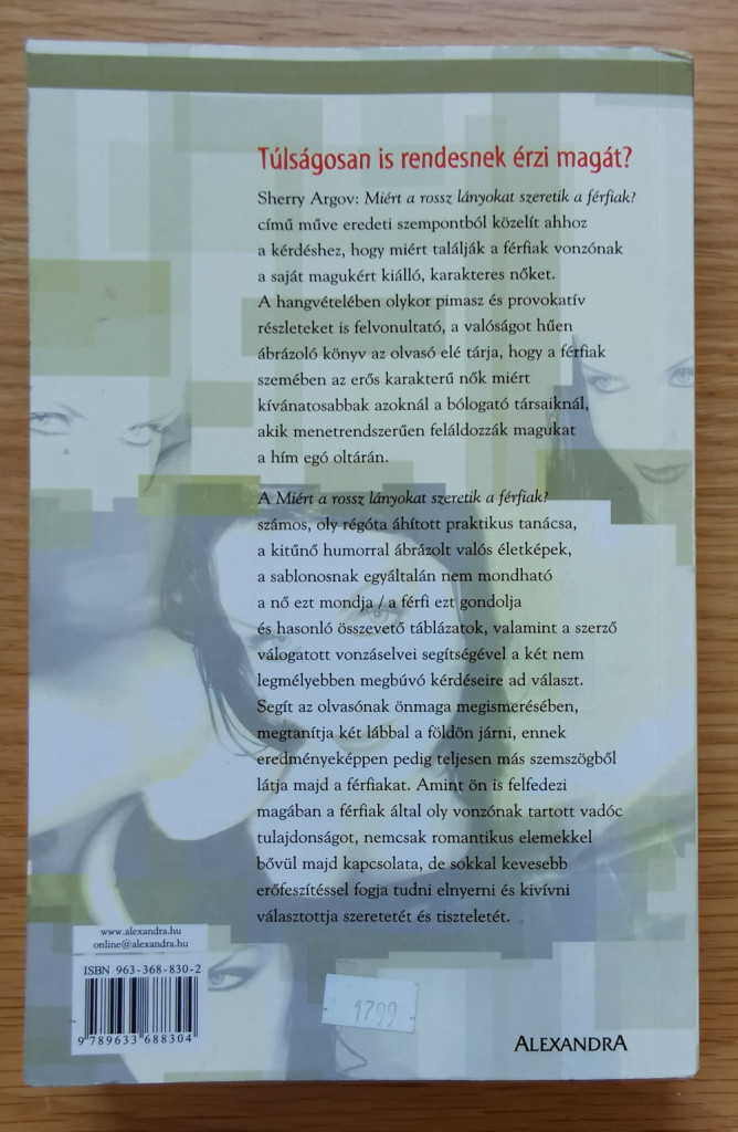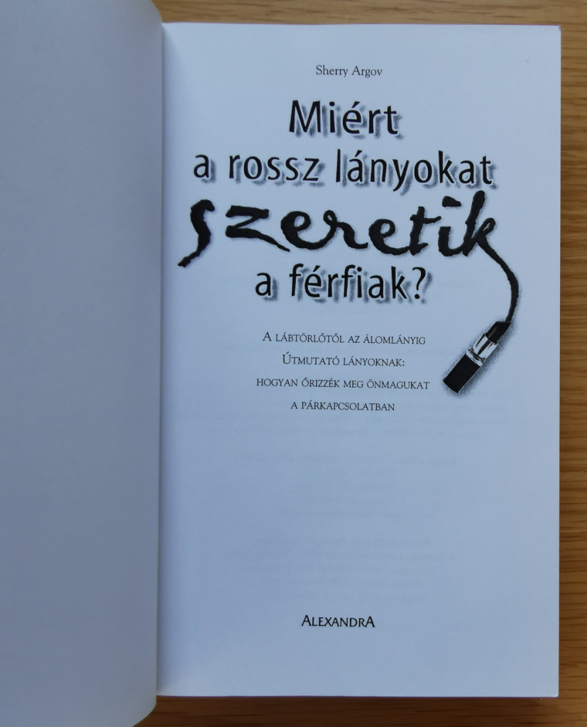 Túlságosan is rendesnek érzi magát? Sherry Argov: Miért a rossz lányokat szeretik a férfiak? című műve eredeti szempontból közelít ahhoz a kérdéshez; hogy miért találják a férfiak vonzónak a saját magukért kiálló, karakteres nőket. A hangvételében olykor pimasz és provokatív részleteket is felvonultató, a valóságot hűen ábrázoló könyv az olvasó elé tárja, hogy a férfiak szemében az erős karakterű nők miért kívánatosabbak a bólogató társaiknál.
