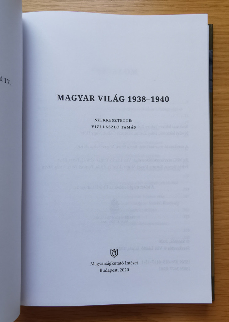 Vizi László Tamás (szerk.): Magyar Világ 1938-1940