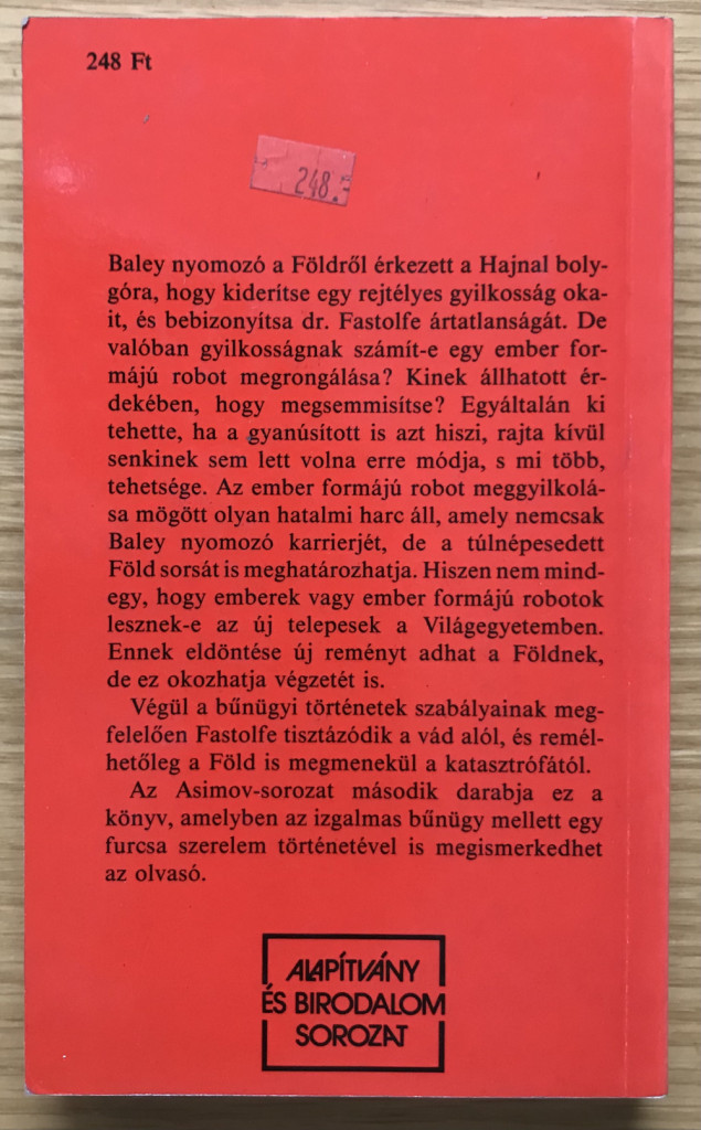Baley nyomozó a Földről érkezett a Hajnal bolygóra; hogy kiderítse egy rejtélyes gyilkosság okait, és bebizonyítsa dr. Fastolfe ártatlanságát. De valóban gyilkosságnak számít-e egy ember formájú robot megrongálása? Kinek állhatott érdekében, hogy megsemmisítse? Egyáltalán ki tehette, ha a gyanúsított is azt hiszi, rajta kívül senkinek sem lett volna erre módja, s mi több, tehetsége. Az ember formájú robot meggyilkolása mögött olyan hatalmi harc áll, mely nemcsak Baley nyomozó karrierjét, de a túlnépesedett Föld sorsát is meghatározhatja. Hiszen nem mindegy, hogy emberek vagy ember formájú robotok lesznek-e az új telepesek a Világegyetemben. Ennek eldöntése új reményt adhat a Földnek, de ez okozhatja végzetét is. Végül a bűnügyi történetek szabályainak megfelelően Fastolfe tisztázódik a vád alól, és remélhetőleg a Föld is megmenekül a katasztrófától. Az Asimov-sorozat második darabja ez a könyv, amelyben az izgalmas bűnügy mellett egy furcsa szerelem történetével is megismerkedhet az olvasó.
