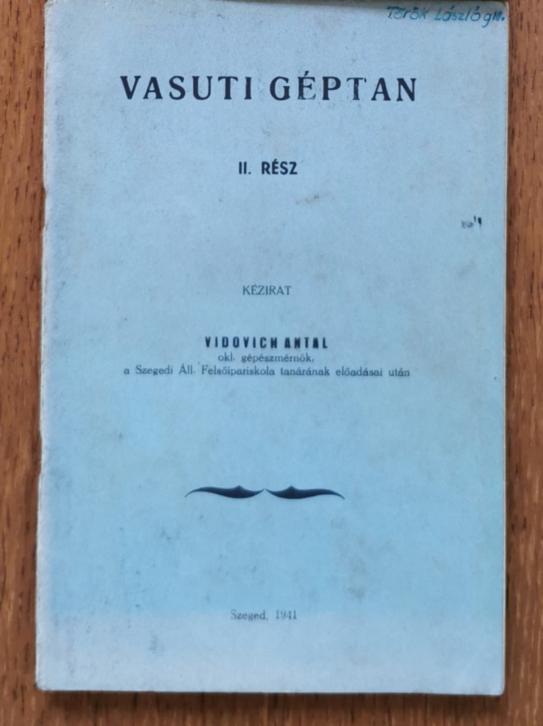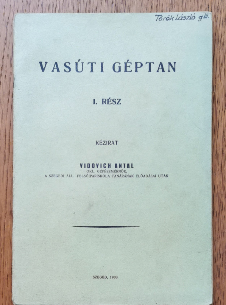 Vidovich Antal: Vasúti géptan I-II. (Kézirat)