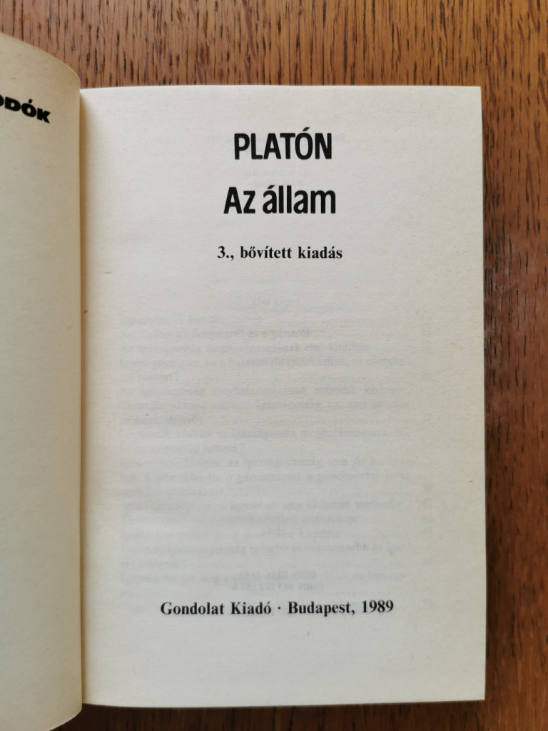Platón nevét és alkotását hosszú évszázadok őrizték meg; gondolatai korunk számára is érdekesek. E kötet teljes terjedelmében mutatja be Az állam című művét, melyet kitüntetett hely illet meg a Platón-dialógusok között. Többi művétől eltérően ez majdnem teljes filozófiai rendszer, amelyen belül a főhely Platón állam- illetve társadalomtanát illeti meg. a könyv lapjairól képet nyerhetünk az ókori görög filozófusnak az államra vonatkozó érdekes, sokszor frappáns, néha naiv elképzeléséről. A kötetet értékelő tanulmány és jegyzetek egészítik ki.