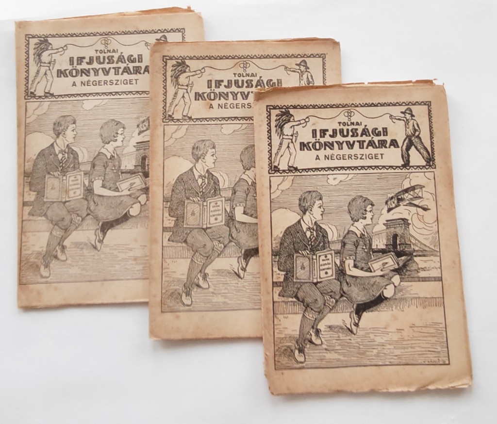 Dumas, Alexandre: A négersziget. Regény. Bp. (192?.) Tolnai Nyomdai Műintézet. 28+29-56+57-84 p. /Tolnai ifjúsági könyvtára/. A 3 füzet tűzés nélküli egységes kiadói papírborítóban, jó állapotban. 230x150 mm.