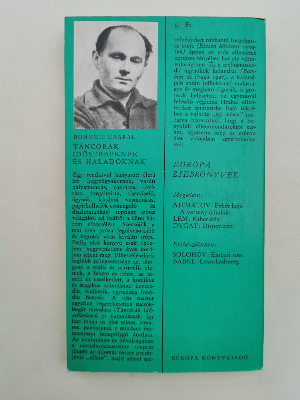 Egy rendkívül hányatott életű író (jegyzőgyakornok, vasúti pályamunkás, raktáros, távírász, forgalmista, tisztviselő, ügynök, kladnói vasmunkás, papírhulladék-csomagoló és díszletmunkás) roppant színes világából ad ízelítőt a kötet három elbeszélése. Szerzőjük a mai cseh próza legolvasottabb és legtöbb vitát kiváltó írója. Pedig első könyve csak 1962-ben, negyvenkilenc éves korában jelent meg. Elbeszéléseinek legfőbb jellegzetessége az, ahogyan a reális és szürreális elemek, a fekete és fehér, az útszéli és emelkedett, a komikus és tragikus szüntelenül keveredik, ölelkezik, egymásba fonódik bennük. A vén suszter egyetlen végeérhetetlen tücsök-bogár mondata (Táncórák idősebbeknek és haladóknak) így lesz maga az élet színes, zavaros, parttalanul s mindent összemosón hömpölygő áradata. Az unalmában és dévajságában a távírdászkisasszony csupasz ülepét az állomás összes pecsétjével ellátó, majd német szerelvényeket robbantó forgalmista esete (Szigorúan ellenőrzött vonatok) éppen az erős ellentétek együttes fényében hat oly véres-valóságosan. És a szélhámoskodó ügynökök kalandjai (Bambini di Praga 1947), a kalandjaik során felbukkanó mulatságos és megható figurák, a groteszk helyzetek, az egymással feleselő végletek Hrabal ellentéteket szintézisbe fogó tükrében a valóság „égi mását” mutatva bizonytják, hogy a bonyolult ellentmondásoktól terhes, egyszerre szép és csúnya élet valójában egyértelműen szép.
