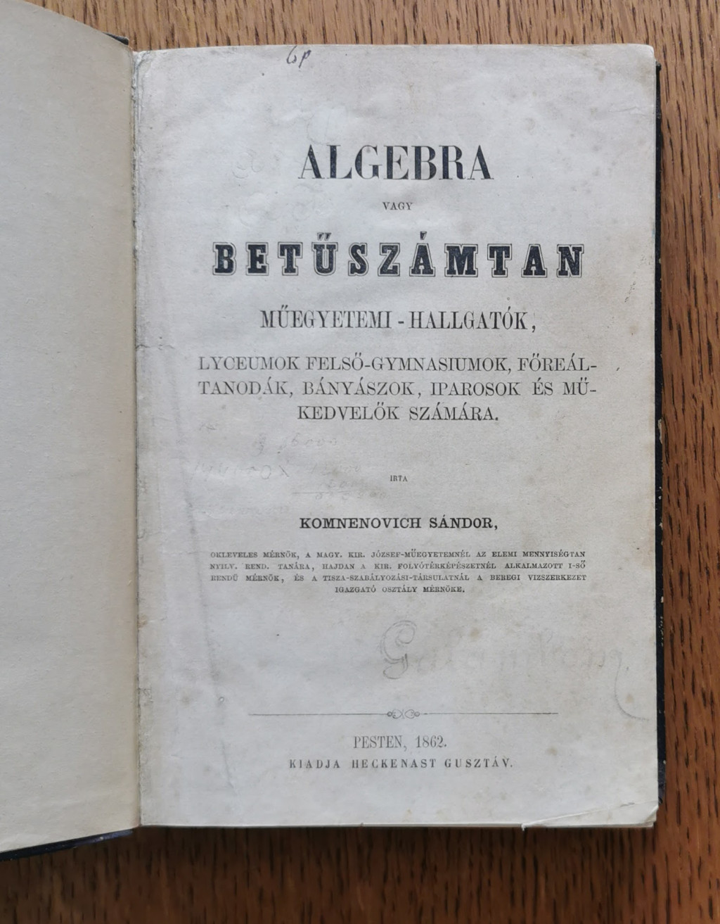 Komnenovich Sándor: Algebra vagy betűszámtan (1862, Első kiadás!)